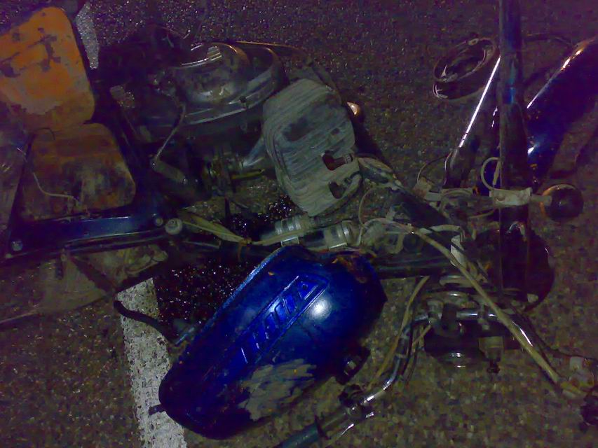 ..вот еще край непуганных идиотов..Поехал купить пивка на ночь, пока стоял около магазина - слышу метрах в ста хлопок,подъезжаю - типы на моцыке впоролись в бочину пятерки,все целые, водила даж удрал...