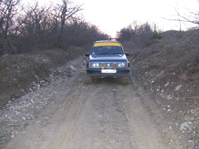 Вот покатались недавно. Расскажу малость.Снег растаял, решили прорваться на широкую балку с мысхако. Много раз там катались,но в сухую погоду. А щас грязь, всё раскисло. Ну ладно. Раздатку врубаем, 4wd повышенный ряд и полный вперёд. На первый бугор кое-как загребли (грязюки по ухи,почти как на фото Шатуна), но что-то не так. Ладно резина дерьмо (полулетняя, почти не зубастая), но чувствуется, что машину носит. Открываю окно, высовываюсь, гляжу. Ёлки-палки!!! Зад гребёт, а перед на месте стоит. Вот блин-приехали. С трудом въехали на подъем, борясь с заносами (была возможность упасть в канаву, где грязи по горло,но пронесло). Мозгуем:впереди лужа, сантиметров 40 глубиной, берега-грязюка. Нет,думаем, не проедем. С трудом развернулись на дороге. Машина из джипа полноприводного, превратилась в мото коляску, с задним приводом. Ну ладно, спустились. Возле противотанкого ежа надыьали речушку. Ну думаем,колёсики то и помоем. Мордой заехали, помыли, а выехать КУЙ! Ну ё-маё!!!! Растройству нет предела..... Как паркетник блин, задние колёса шлифуют грязь (причём одно только, сказывается отсутствие дифлоков), перед - МЁРТВ!!! Всё блин,приплыли!!!!!!! Стоим позоримся. Звонок другу, обещает приехать, нужно ждать, а тем временем темнеет, да и на улице не месяц май. Ждём, тем временем останавливается двенашка, парни хотят помочь. Цепляем. Нифига...... Не могут вытащить Эскудика массой около 1,6 тонн и баста. Ну ландо. Подмога прибыла, дизельный TOWN ACE оттяжной через дерево нас вытягивает. Ну наконец........... На асфальт вылезли.