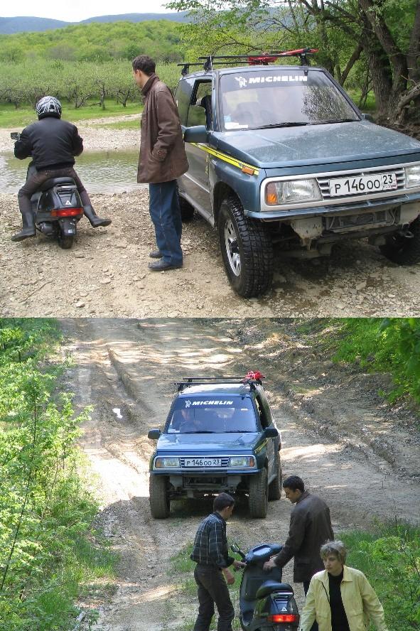 До самого Тхаба по ЛЭПкам доехали без проблем (даже не хайджечились и не винчевались не разу), хотя разок сели рамой, но сползли сами. Ну и гребни коллей пришлось крошить рачагами и защитой раздатки. По Тхабу полазили, погорцевали все поочереди на мопеде и спустились обратно вниз к речке, шашлыки жарить. Кстати отсутствие переднего бампера существенно увеличивает проходимость)))))) И вообще Эскуда на пониженной - танк!!! В следующий раз надо ордой туды завалиться, место класс!!!! Особенно когда всё просохло хорошо, но грязь помесить тоже весело.