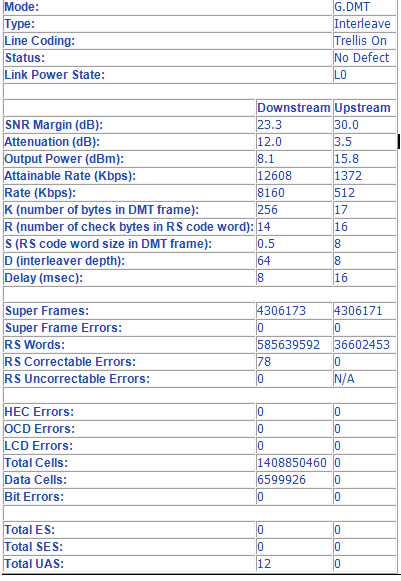 глянь Attainable Rate и Rate (это к слову о мах возможности линии в контексте одуляции и текущем подключении) и сравни свои => ещё 1 + к тому что это чёс!