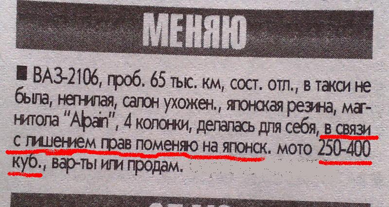 1. Так, ну, во-первых, я надеюсь, что ты уже оделась и накрасилась, иначе точно никуда не успеешь. 2. Нет, нет!! Свои шикарные итальянские туфли на высоком каблуке лучше оставь дома. 3. Хорошо, молчу, но хотя бы возьми сменную обувь. 4. Так отлично, вставь ключ в замок и открой дверь. 5. С водительской стороны. 6. Дверь возле руля. 7. Вон видишь такое колесико - это и есть руль. 8. Переобуйся. 9. Во-первых, тапочки на каблуки ты не оденешь, во-вторых, иди домой и возьми, что-нибудь более приемлемое. 10. Нет, туфли со шпильками не подойдут. 11. Не надо мне перечислять весь свой обувной гардероб, просто возьми кроссовки. 12. Повтори все пункты с 4-го по 8-й. 13. Отлично, теперь вставь ключик в дырочку сбоку от руля и поверни его. 14. Пружинить обратно на полоборота он должен, не ломай зажигание. 15. Положи обратно огнетушитель, зажигание - это не то, что ты думаешь. 16. Теперь перестань жать на газ - это не сцепление. 17. У тебя коробка-автомат, тут третьей педальки не предусмотрено, просто переведи рычаг в положение "D". 18. Так, слезь с заднего сидения и сядь обратно, если коробка-автомат, это не значит, что машина будет ехать автоматически. 19. Сними машину с ручного тормоза. 20. Рычажок посередине салона. 21. Это не "пошлая штучка", это и есть ручной тормоз. 22. Нажми кнопочку и опусти рычаг вниз. 23. Прекрати морщиться, это делают каждый день сотни водителей, в том числе и мужского пола. 24. Аккуратно нажми на педаль газа. 25. Конечно она не едет - сними с педалей противоугонное устройство. 26. С руля тоже. 27. Включи левый указатель поворота. 28. На руле рычажок - опусти его вниз. 29. Нет, это не у тебя машина такая крутая, что повортники на лобовом стекле, просто выключи дворники и опусти вниз другую ручку. 30. Так, поехали. 31. Сносить этому бедному "запорожцу" бампер было вовсе не обязательно. 32. Согласен, милое деревцо. Было. 33. Дверь "ракушки" тут тоже совсем не причем, я тебя уверяю. 34. Так, едем - это уже плюс. 35. То, что о тебе думает этот симпатичный молодой человек, сидящий за рулем соседнего автомобиля, и почему он на тебя так загадочно смотрит, знать тебе вовсе ни к чему. 36. Прекрати ему строить глазки. 37. Он не грубиян, я же тебя предупреждал. 38. А чего ты хотела от человека, который благодаря тебе чуть не въехал под Камаз. 39. Рулить аккуратней надо, а не на витрины бутиков смотреть. 40. Хорошо, раз ты хочешь заехать в этот магазин - паркуйся. 41. Включи правый поворотник. 42. Тьфу, то есть, выключи дворники и переведи другой рычажок в верхнее положение. 43. Перестройся вправо. 44. СЯДЬ ОБРАТНО ЗА РУЛЬ!!!!!! 45. Уффф... 46. Посмотри в зеркало заднего вида и медленно снижая скорость сворачивай на правую полосу. 47. Ну, этого мотоциклиста все равно уже ничего бы не спасло. 48. Велосипедиста тоже. 49. Они живы - они в шлемах. 50. Аккуратно паркуйся вдоль тротуара. 51. Нет, это не "забавный прыгающий клоун" - это пешеход, которому ты наехала на ногу. 52. Успокойся, во-первых, шину он тебе не поцарапал, а во-вторых, ему больше ходить негде, кроме как по тротуару. 53. Выезжай на проезжую часть и паркуйся нормально. 54. Нет, этот пешеход сам виноват. 55. Удивляюсь, как может такая хрупкая девушка как ты тащить на себе столько сумочек и пакетов из магазина. 56. Едем дальше, включи левый повортник, посмотри в зеркала и вперед. 57. В зеркала, дорогая, смотрят не для того, чтобы подкрасить губы и реснички, а чтобы смотреть не мешаешь ли ты машинам своим выездом от парк